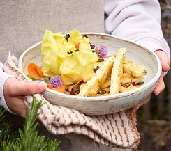 - Mit Schnittlauch im Mixer fein pürieren. Anschließend durch ein feines Sieb passieren.