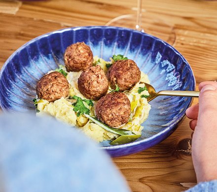 - Hackbällchen: Zwiebel fein würfeln und in Butter glasig anschwitzen. Zum Hackfleisch geben, mit Salz, Pfeffer, Senf, Ei und Paniermehl vermengen. Kleine Bällchen formen und in einer Pfanne goldbraun anbraten.
