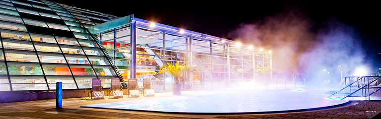 - Familienfreundliches Badevergnügen wird bei jedem Wetter geboten, inklusive einer 93 Meter langen Black-Hole-Rutsche und einer 122 Meter langen Reifenrutsche Crazy River