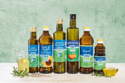 Ein Allrounder in der Pfanne ist unser VonHier Brat- & Backöl. Es ist besonders hitzeresistent und macht sogar in der Fritteuse eine gute Figur. Es unterstreicht den feinen Eigengeschmack der Lebensmittel, mit denen es kombiniert wird, ohne sie zu verfälschen. In der kalten Küche lässt sich das vielseitige Produkt ebenfalls gut verwenden.