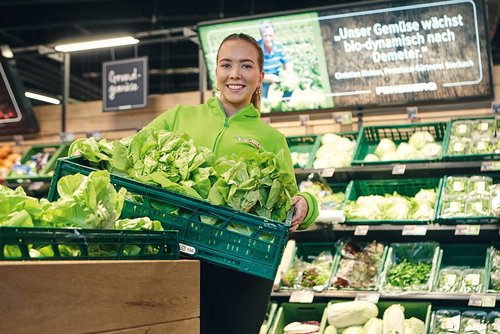 Ein großer Vorteil unserer VonHier-Produkte sind die kurzen Transportwege. Direkt nach der Ernte holen unsere firmeneigenen Lkws das Obst und Gemüse von den Feldern ab. Diese direkte Abholung verkürzt Lagerzeiten und sorgt dafür, dass die Produkte schnell in unsere Märkte gelangen. Die Qualität unserer VonHier-Produkte hat oberste Priorität. Um sicherzustellen, dass nur die besten Früchte und das knackigste Gemüse in unseren Märkten landen, führen wir regelmäßig Qualitätskontrollen durch. Bereits auf den Feldern achten unsere Partnerbetriebe auf höchste Standards. Diese umfassenden Maßnahmen garantieren Frische und Geschmack, auf die sich unsere Kundinnen und Kunden verlassen können.