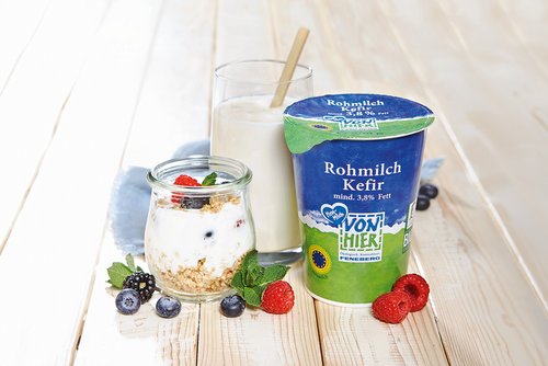 Erleben Sie die außergewöhnliche Qualität der VonHier-Produkte der Familie Lerf aus Ottobeuren selbst und lassen Sie sich vom unvergleichlichen Geschmack überzeugen. Neben unserer Vorzugsmilch, Joghurt und Fruchtjoghurt bieten wir Ihnen ab sofort auch Kefir in VonHier-Qualität in unseren Kühlregalen an.