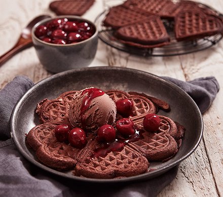 Brownie-Waffel mit Glühwein Schatten Morellen