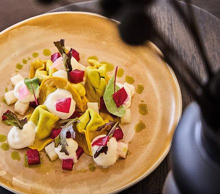 - Spinat-Ravioli: Mehl auf eine Arbeitsfläche sieben, Mulde drücken, Eier, Olivenöl und Salz hinzufügen. Zutaten zu einem glatten Teig verkneten, in Frischhaltefolie wickeln und 30 Min. ruhen lassen. Spinat in kochendem Wasser blanchieren, abtropfen lassen, fein hacken und mit Rahmkäse, Semmelbrösel, Knoblauch, Salz und Pfeffer vermengen. Teig dünn ausrollen, in Quadrate schneiden, Füllung auf jedes Quadrat geben, Ränder mit Wasser bestreichen, ein weiteres Quadrat darauflegen, gut andrücken und mit einer Gabel verschließen. Ravioli 3 bis 4 Min. in kochendem Salzwasser garen, bis sie an die Oberfläche steigen. Abtropfen lassen.