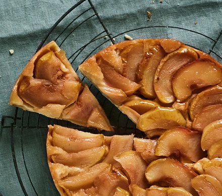 - Die Tarte aus dem Ofen nehmen und auf einen Kuchenteller stürzen. Mit etwas geschlagener Sahne und Zimt servieren.