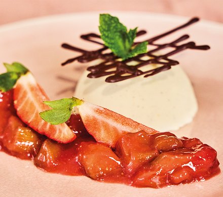 Vanilleparfait mit Erdbeer-Rhabarber-Kompott