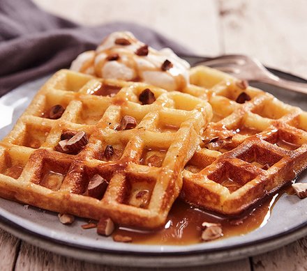 - Die warmen Waffeln mit Puderzucker bestäuben und mit Salzkaramell oder Fruchtkompott servieren.