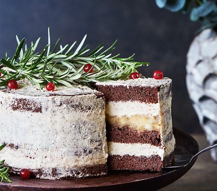 - Für die Dekoration die Torte in einer dünnen Schicht von allen Seiten einstreichen und mit den Rosmarinzweigen sowie Johannisbeeren nach Belieben dekorieren.