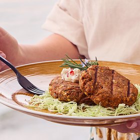 Ein echter Sommergenuss: Frischer Salat mit VonHier-Grillkäse, knackigem Gemüse und geröstetem Baguette.