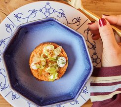 Frisch, cremig und voller Geschmack! Tatar aus gelben Rüben mit Apfel-Relish und Mayonnaise.