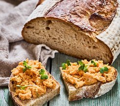 Cremig-würziger Aufstrich aus Süßkartoffeln, verfeinert mit frischen Kräutern – perfekt zu knusprigem Dinkelbrot!