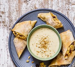 Crème-Brûlée mal anders: Würzig mit Schafsjoghurt und dazu ein frischer Gemüsesalat – raffiniert und überraschend leicht.