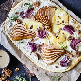 Flammkuchen mit Birnen und Camembert