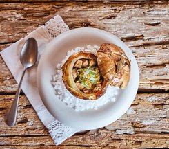Traditioneller Klassiker neu interpretiert - Herzhafte Beuscherl aus frischen Kartoffeln in cremiger Pilzsoße.