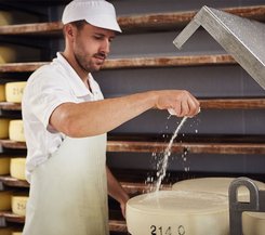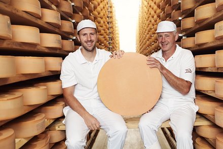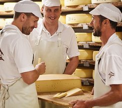 Das Käser-Gen hat Familie Gmeiner in die Wiege gelegt bekommen – so tritt Sohn Pirmin bereits in 4. Generation in die Fußstapfen seines Vaters und wird die Käserei in den nächsten Jahren übernehmen. „Als Jugendlicher habe ich mir verschiedene Berufe angeschaut, aber es hat mich nichts so sehr begeistert wie das Käsen, sodass ich dabei geblieben bin und meine Ausbildung sowie den Meister absolvierte. Ich kann es mir woanders einfach nicht mehr vorstellen“, erklärt Pirmin Gmeiner seine Entscheidung zum Familienbetrieb. Neben der Familie sind noch weitere 20 Mitarbeiter in der Käserei sowie hauptsächlich in den Verkaufsläden beschäftigt. „Wir haben im Team einen starken Zusammenhalt und ein familiäres Klima, ohne das würde es in unserer kleinen Käserei aber auch nicht funktionieren“, erläutert Pirmin Gmeiner stolz.