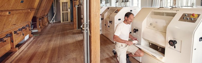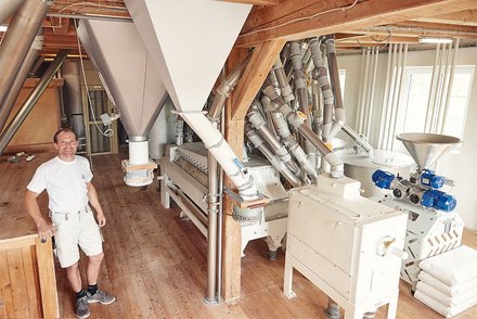 Die Engelhardmühle liegt idyllisch im bayerischen Mittelschwaben. Sie präsentiert sich wie aus dem Bilderbuch: Im Ensemble eines Viereckhofs stehen neben der Mühle Stallgebäude und Scheunen, Pferde weiden auf der Koppel, die Roth plätschert vorbei und auch eine Hauskapelle fehlt nicht. Dynamisch und von herzlicher Art ist der Müller - Alexander Engelhard. Seine Mühle verarbeitet das Getreide von ökologisch wirtschaftenden Betrieben der Gegend zu hochwertigem Bio-Mehl und -Schrot.