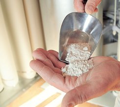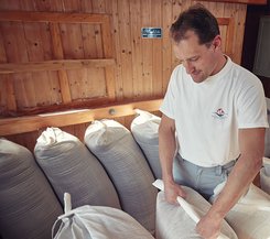 Drei Sorten Getreide werden in der Engelhardmühle vermahlen: Weizen, Dinkel und Roggen – alles aus ökologischem Anbau. „Je länger ich Bio mache, umso überzeugter bin ich davon", sagt Engelhard, „denn man weiß, was sonst so alles drin sein kann im Mehl". Das seien zum Beispiel Rückstände aus Pflanzenschutzmitteln, die im Getreide aus konventionellem Anbau vorkommen können oder synthetische Vorratsschutzmittel, wie sie in konventionellen Mühlen eingesetzt werden.