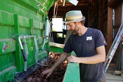 Der Hof liegt inmitten der Endmoränenlandschaft des Paartals, dort, wo sich vor Jahrtausenden die Gletscher zurückzogen. „Diese Böden sind ideal für unsere Kartoffeln“, erklärt Christoph Ehrhardt. Rund 100 Hektar bewirtschaftet das Team, davon etwa 45 Hektar mit Kartoffeln. Die Fruchtfolge ist sorgfältig geplant: Kleegras und Leguminosen lockern den Boden, Dinkel und Roggen ergänzen den Kreislauf. Auch diese Getreide liefert der Paartal Biohof an Feneberg – als Mehl für Backwaren. Das Herzstück aber bleibt die Kartoffel. „Wir wollen die Kundinnen und Kunden möglichst das ganze Jahr über mit regionalen Kartoffeln versorgen. Dieses Jahr hatten wir eine hervorragende Ernte, die fast bis zur nächsten Frühkartoffel reicht.“