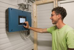Wir betreten einen großen, hellen und wunderbar warmen Raum. Im Moment ist er leer, da die nächsten Küken erst in wenigen Tagen kommen. Aber dann finden die gerade geschlüpften Tiere ein echtes Küken-Paradies vor. Es werden 35 Grad Celsius herrschen, es gibt Sandboden zum Kratzen und Picken, Stroh zum Spielen und vor allen Dingen viel Platz. Zudem sorgen automatische Futter- und Wasserspender dafür, dass die Tiere immer genug zu fressen haben. „Vier Wochen bleiben die Küken hier oben“, erklärt Karl Munz. Dann sind sie groß genug, um in den Hauptstall überzusiedeln. „Der Umzug erfolgt nachts“, sagt Karl Munz. „Dann nehmen wir die schlafenden Tiere und transportieren sie in kleinen Kisten von diesem Stall in den großen Stall.“ Wenn die Hähnchen am Morgen aufwachen, finden sie sich im Hauptstall wieder. Auch hier ist alles so gestaltet, dass die Hähnchen sich rundum wohlfühlen können. Weicher Boden, Sandbäder, Heuballen zum darauf Spielen oder Auseinanderzupfen und sehr viel Platz innen und außen. Auf ganzen drei Hektar Außengelände können die Tiere sich nach Lust und Laune austoben oder sich unter Aroniabüschen und anderen Unterständen verstecken. Ungefähr 8000 Hähnchen hält Karl Munz auf seinem Hof in Hoßkirch. Seit 2013 gehört der Landwirt zum Bioland-Verband und beliefert Feneberg.