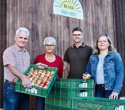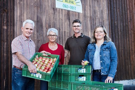 Die Bio Obsthof Blank baut verschiedene Apfel-Sorten für VonHier an, die in unseren Märkten als Tafeläpfel und auch im Saft und Apfelmus zu finden sind.