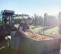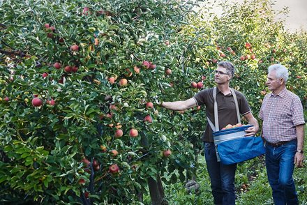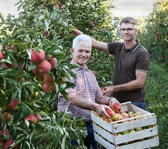 Sanfte, grüne Landschaft am östlichen Rand des Schussentals und dazu mildes Bodenseeklima: beste Voraussetzungen für den Obstanbau von Familie Blank. Mittlerweile baut Peter Blank 22 Hektar Äpfel und 3 Hektar Birnen an. Dies war nicht immer so – anfangs war der Betrieb von Familie Blank ein klassischer Misch-Betrieb mit Milchvieh, Hopfen und Obst. Dies änderte sich jedoch mit der Spezialisierung auf Obstanbau und der parallelen Aufgabe der Milchviehhaltung.