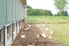 Im Dreieck zwischen Sigmaringen, Friedrichshafen und Biberach liegt Hoßkirch. Etwas außerhalb des 800-Einwohner-Ortes befindet sich der Biolandhof Munz. Hier wachsen die VonHier-Hähnchen heran.