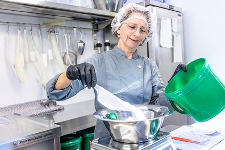 Claudia hingegen ist das kreative Herz der Knittel-Produktion. Mit feinem Gespür für Geschmack und Genuss kreiert sie die Rezepturen und hat ein Händchen dafür, die perfekte Balance zwischen Würze und Cremigkeit zu finden. „Ich liebe es, neue Aromen auszuprobieren und zu sehen, wie die Zutaten miteinander harmonieren“, sagt Claudia. Sie experimentiert, bringt Ideen ein und sorgt für das gewisse Etwas in den Rezepten. Dabei steht sie fest hinter ihrer Philosophie, die natürlichen Aromen der hochwertigen Zutaten so zur Geltung zu bringen, dass jeder Löffel zum Genuss wird. „Es ist uns wichtig, dass unsere Kunden genau das schmecken, was die Natur zu bieten hat – unverfälscht und ehrlich“, betont sie.